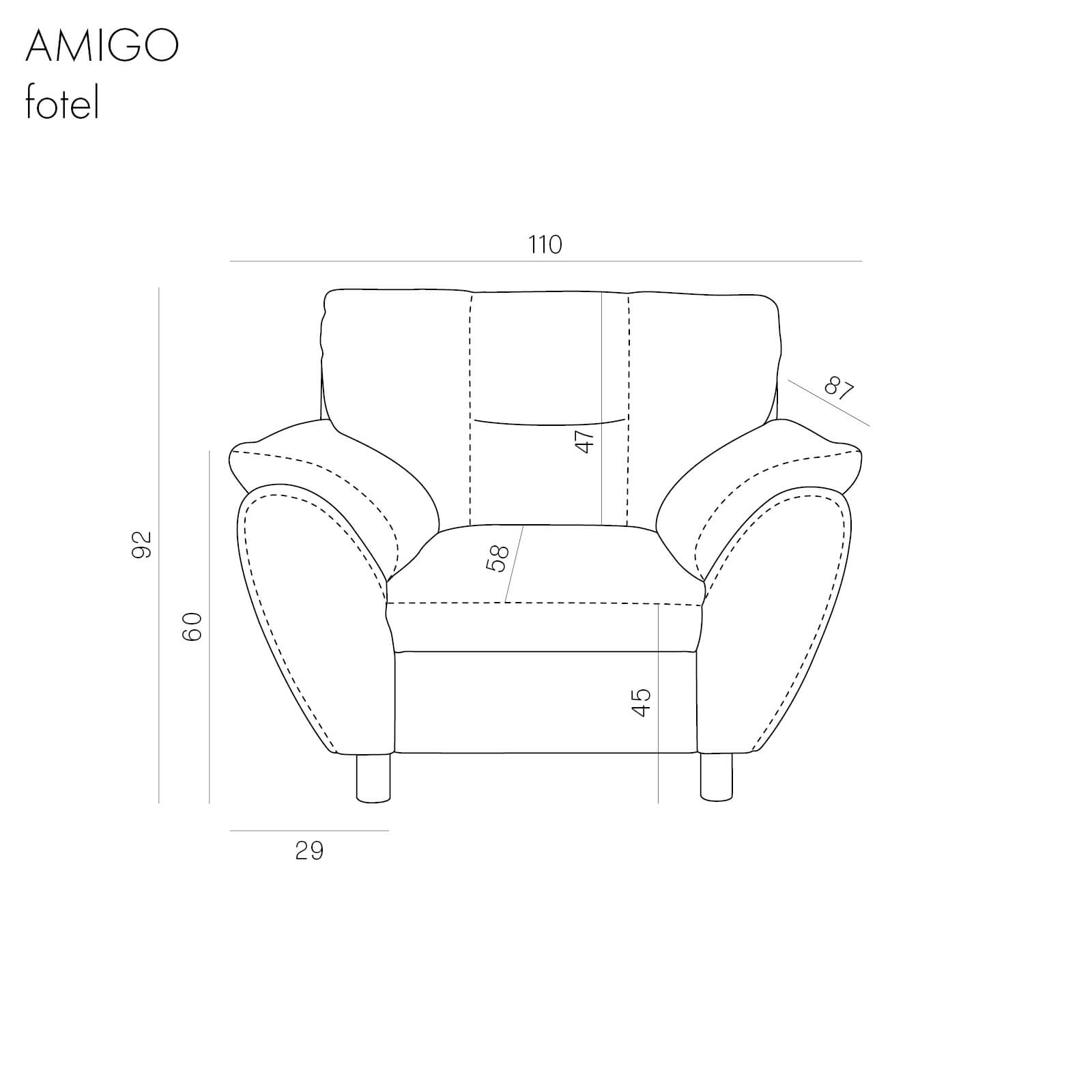 Meble mają wysokie, profilowane oparcia oraz duże metalowe nóżki, dodające im optycznej lekkości i przejrzystości. AMIGO jest godny polecenia jako miejsce odpoczynku dziennego i nocnego.