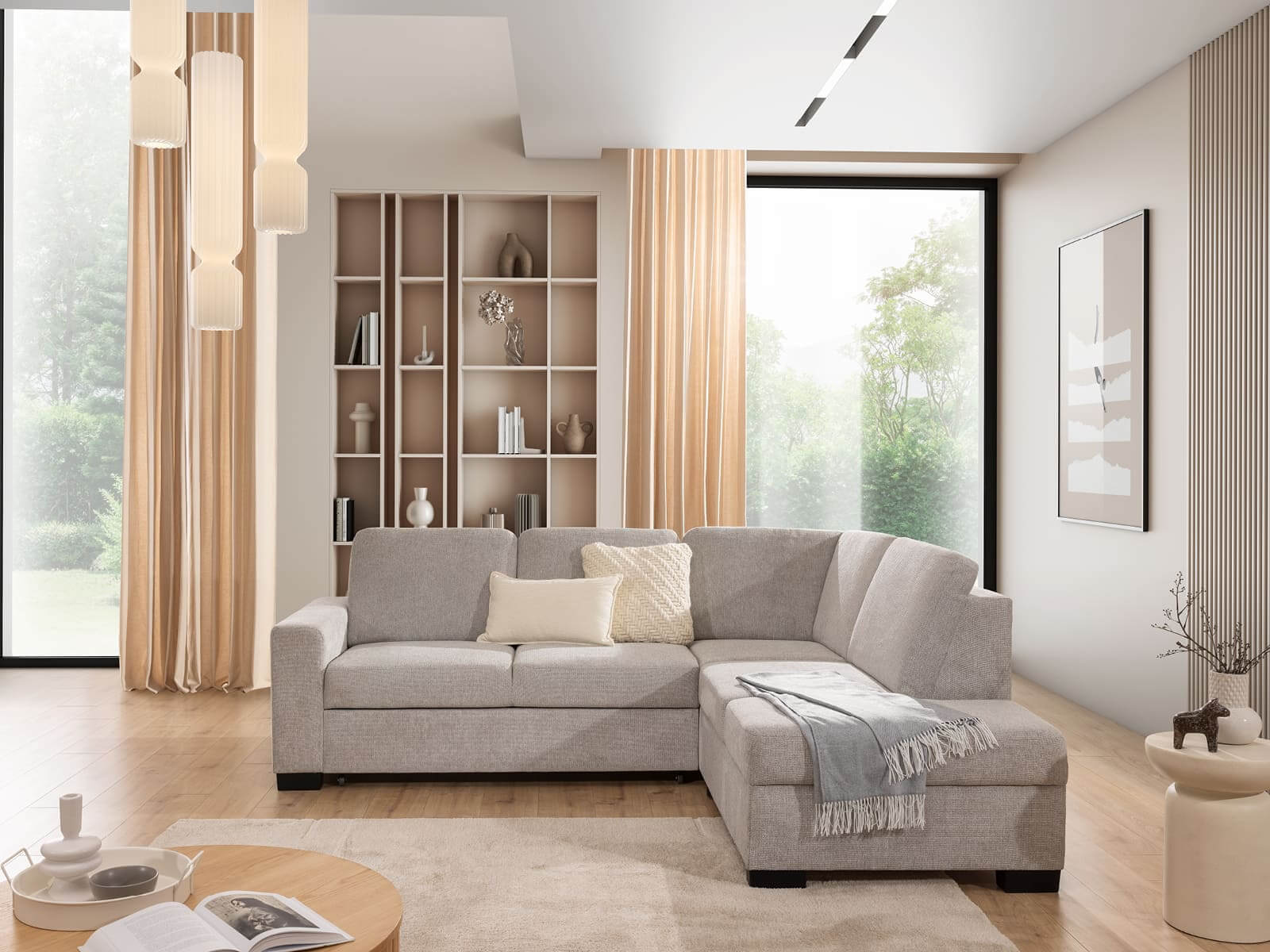 Narożnik Torentino to połączenie nowoczesnego designu z wyjątkowym komfortem. Jego minimalistyczna forma i stonowana kolorystyka doskonale wpisują się w każde wnętrze, tworząc przytulną przestrzeń do relaksu. Przemyślana konstrukcja i miękkie poduszki sprawiają, że to idealne miejsce na odpoczynek każdego dnia.
