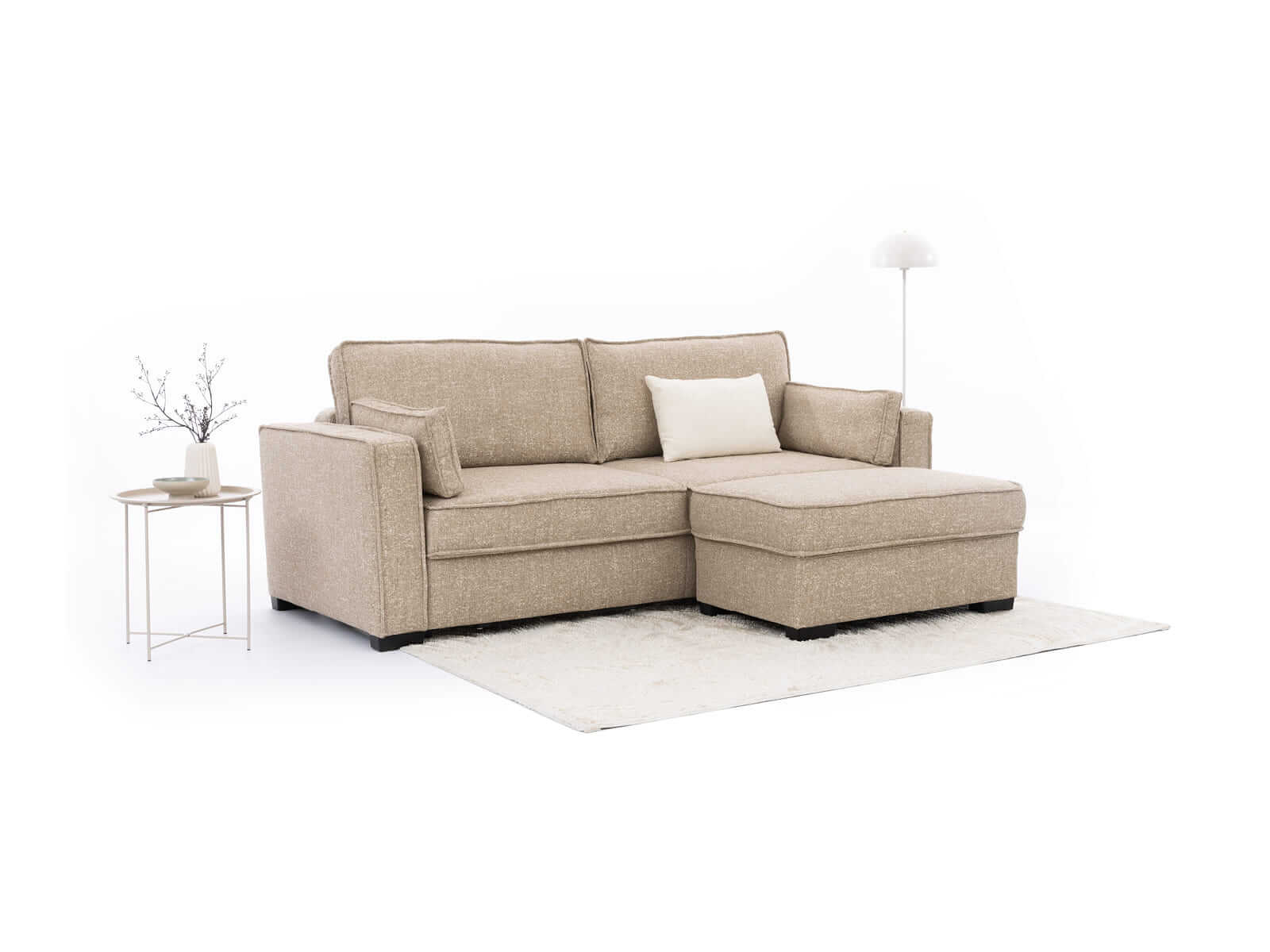 Rea pufa – komfort i więcej możliwości. Przestronna pufa stanowi idealne uzupełnienie sofy, tworząc z nią spójną i funkcjonalną całość. Może pełnić rolę wygodnego podnóżka, dodatkowego miejsca do siedzenia lub – po zestawieniu z sofą – zamienić ją w komfortowy narożnik.